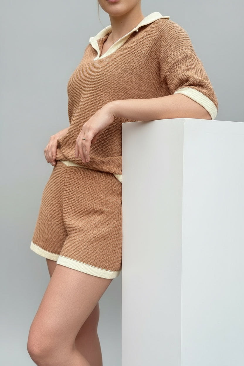 A bermuda Tricot  une conforto e sofisticação em uma modelagem versátil e leve. Confeccionado em tricot canelado macio e flexível, possui cós elástico e barras contrastantes, garantindo praticidade e um visual moderno.