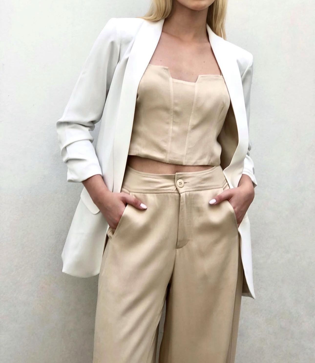 O Blazer de Alfaiataria Alongado é a peça-chave para composições sofisticadas e atemporais. Com modelagem levemente alongada, ele cria uma linha vertical que alonga a silhueta e transmite imponência com leveza.