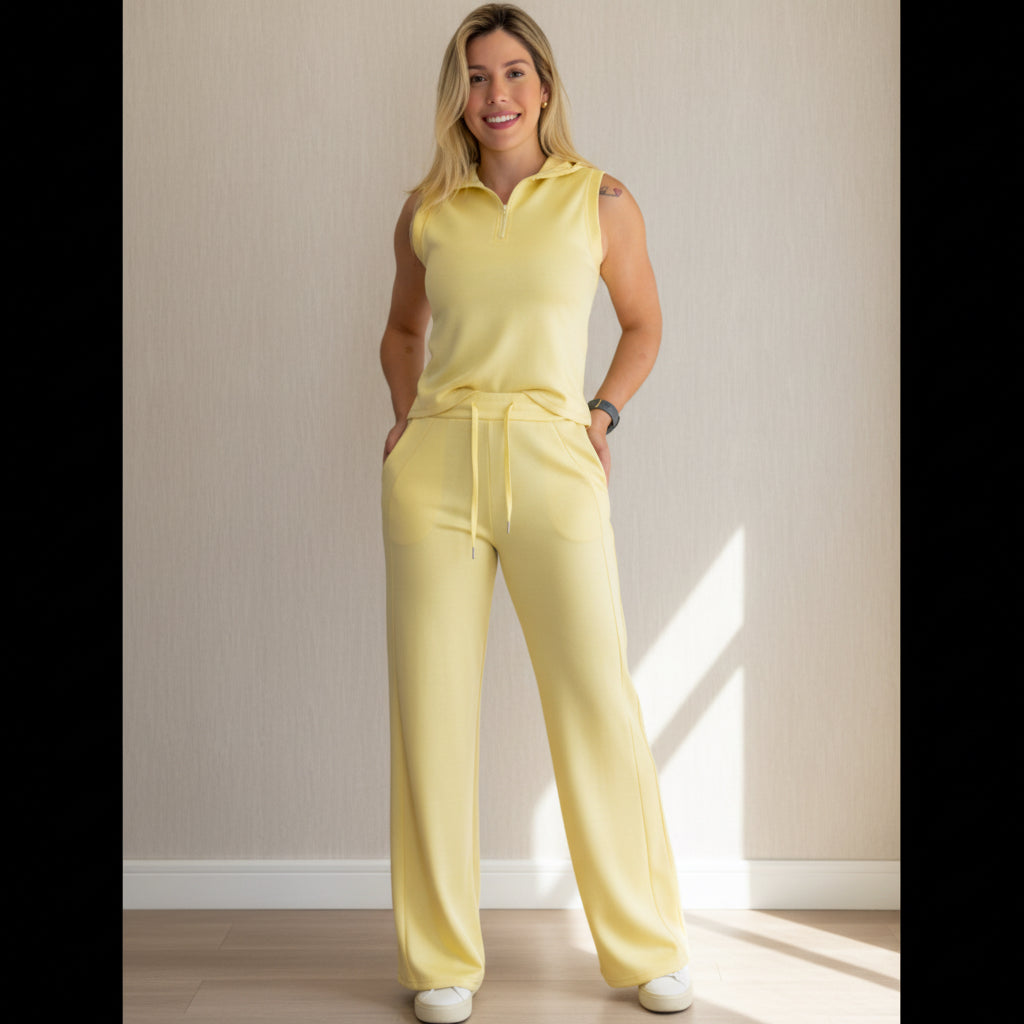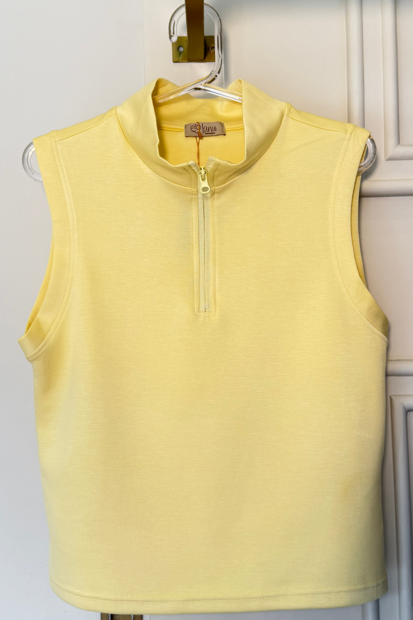 Blusa com toque aveludado sem mangas com zíper frontal, confeccionada em tecido confortável, com toque suave e caimento leve no corpo. O modelo traz gola alta com abertura em zíper, que adiciona um detalhe moderno e versátil à peça, permitindo diferentes formas de uso.