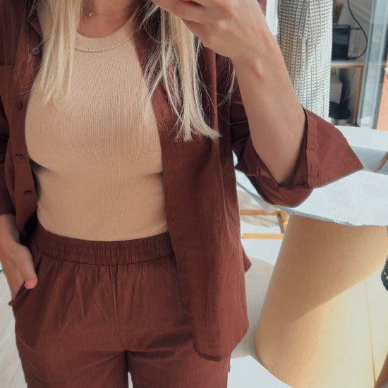 Uma peça atemporal e versátil, perfeita para composições monocromáticas, conjuntos coordenados ou sobreposições leves, traduzindo o equilíbrio entre naturalidade e sofisticação.