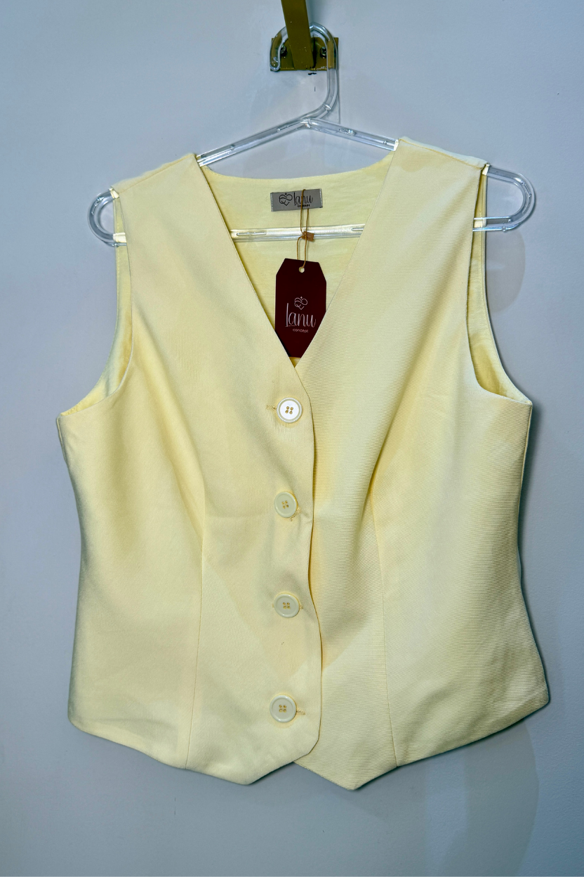 Confeccionado em tecido encorpado e de toque macio, oferece ótimo caimento e conforto ao vestir. O abotoamento frontal adiciona um acabamento clássico à peça, enquanto o design sem mangas permite combinações versáteis — use sozinho ou em conjunto com calça ou saia coordenada para um look alinhado e sofisticado.