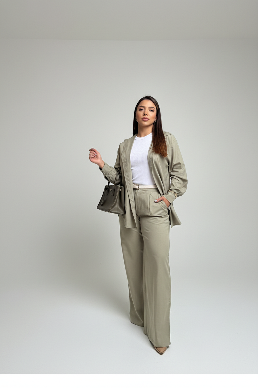 O Conjunto Alfaiataria Leona traduz elegância e conforto em uma produção moderna e atemporal. Produzido em tecido de alfaiataria com leve elasticidade, o conjunto oferece caimento impecável, toque suave e estrutura leve, ideal para composições sofisticadas e versáteis.
