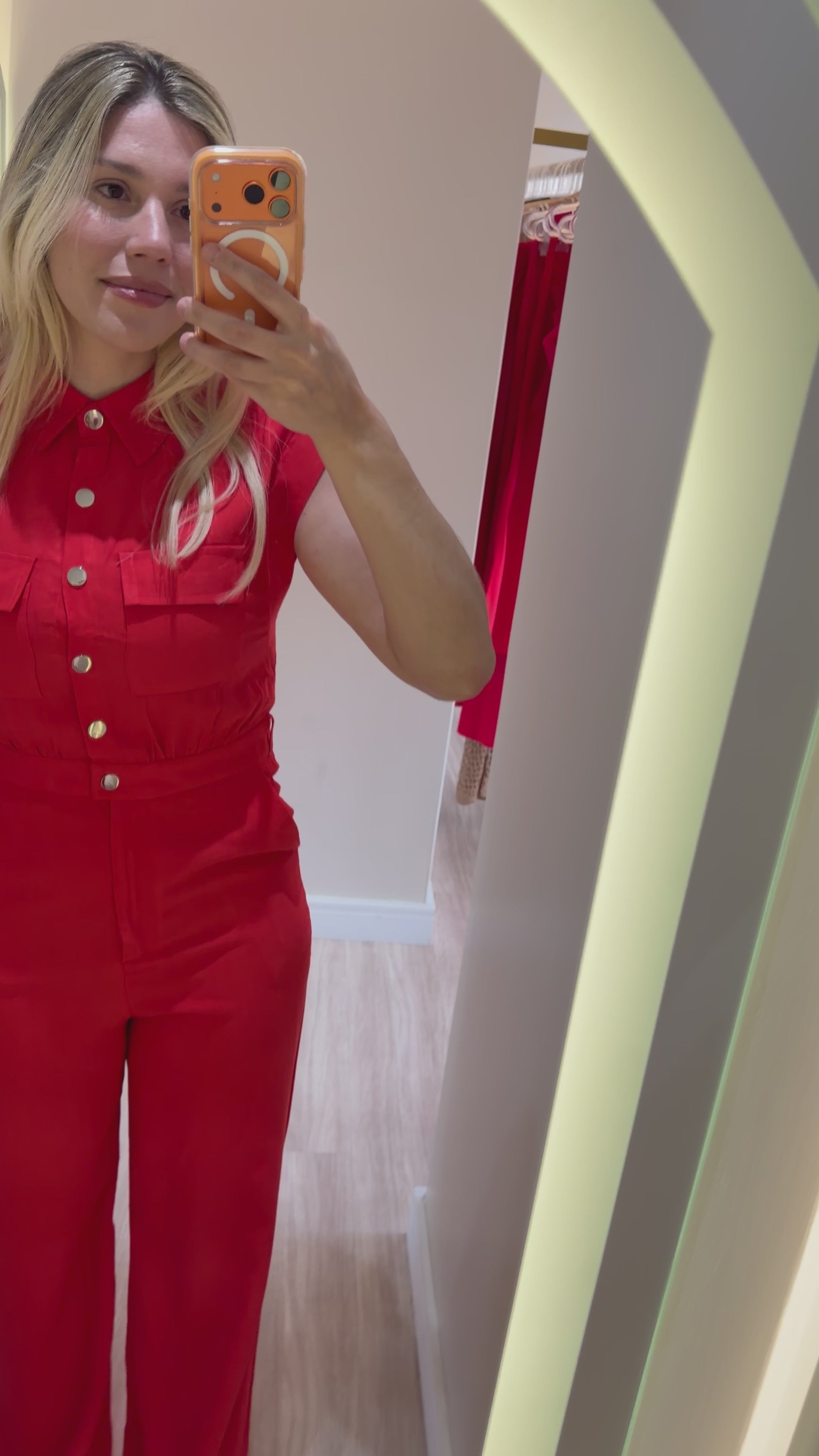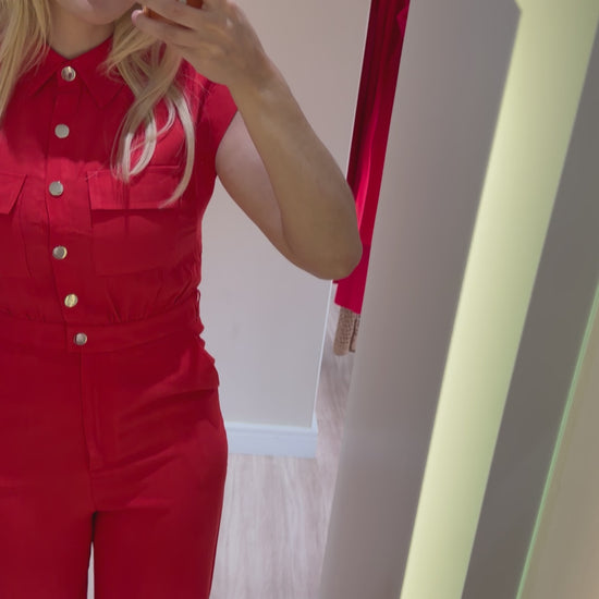 O macacão vermelho Lanu é aquela peça única que resolve o look com sofisticação e presença.