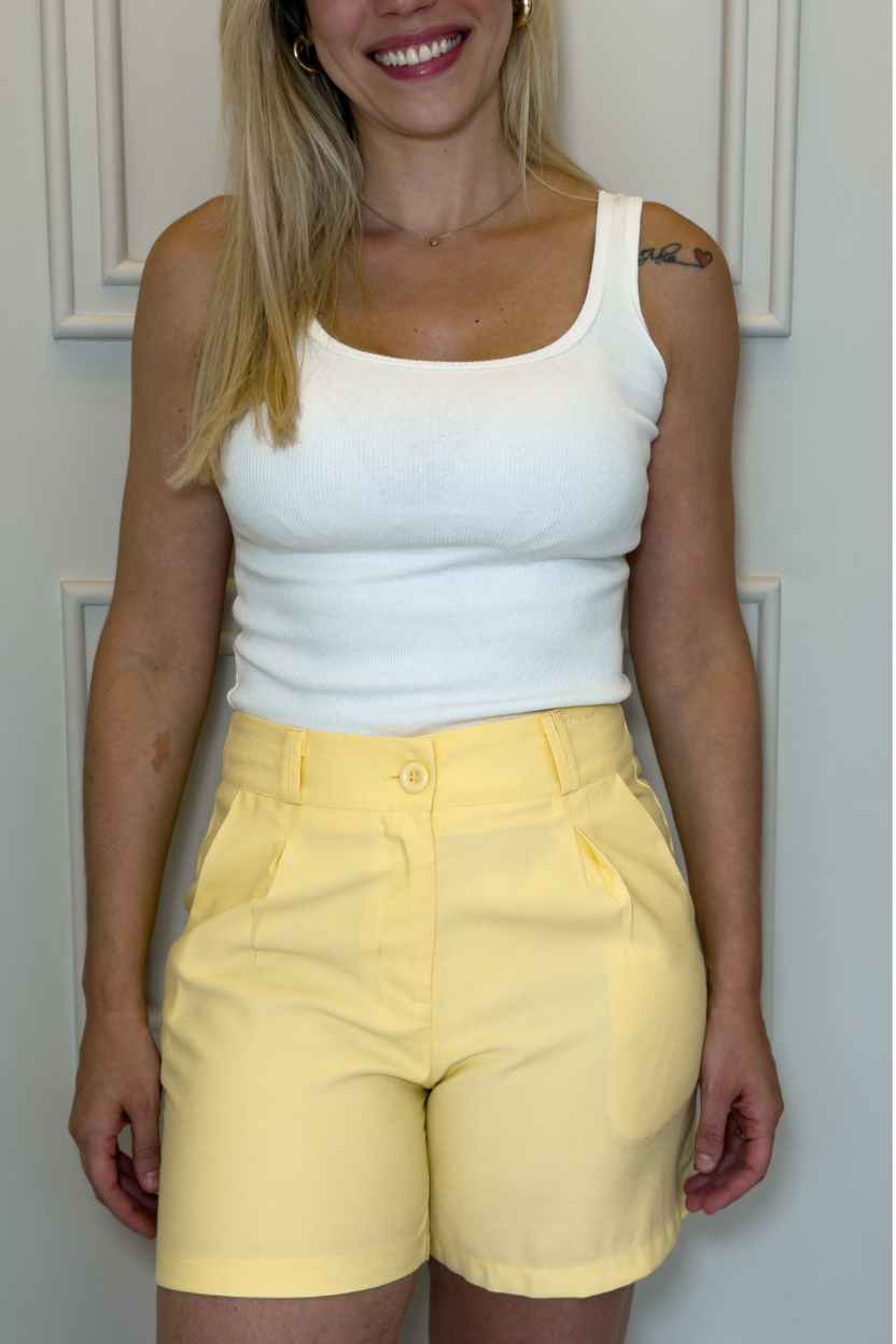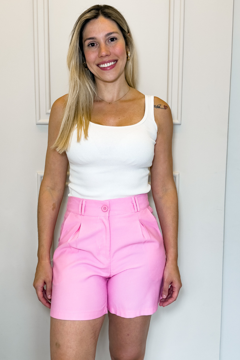 O Shorts Alfaiataria Clássico é aquela peça coringa que une conforto e elegância em qualquer ocasião. Com modelagem reta e cintura alta, ele valoriza a silhueta e garante um caimento impecável. Possui bolsos laterais funcionais e fechamento frontal com zíper e botão, trazendo praticidade e sofisticação.