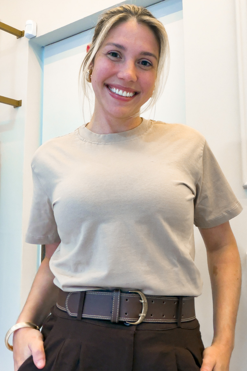 Combina conforto natural e elegância minimalista. Produzida em 100% algodão, ela oferece toque macio, respirabilidade e caimento leve — perfeita para quem busca estilo e bem-estar no dia a dia.